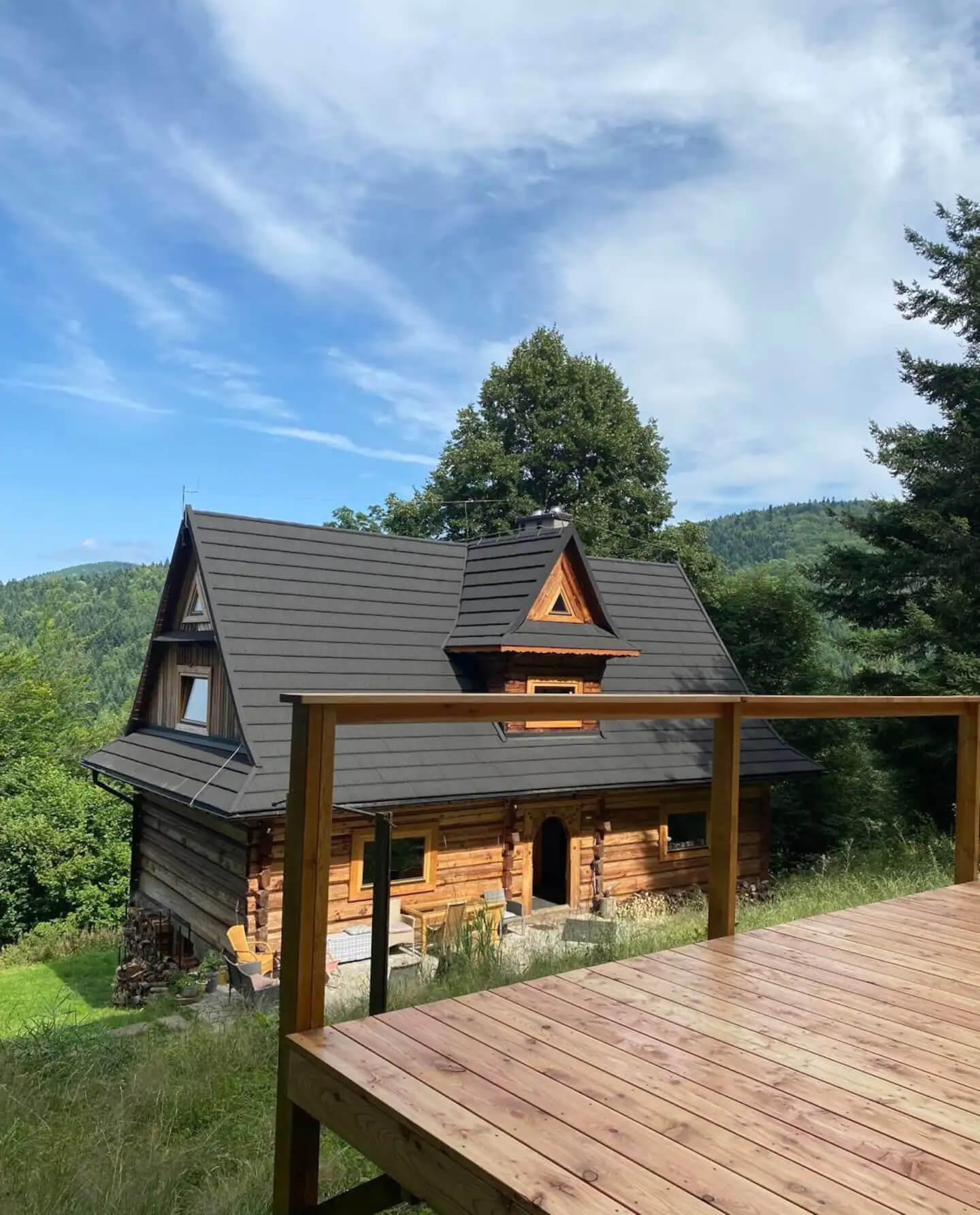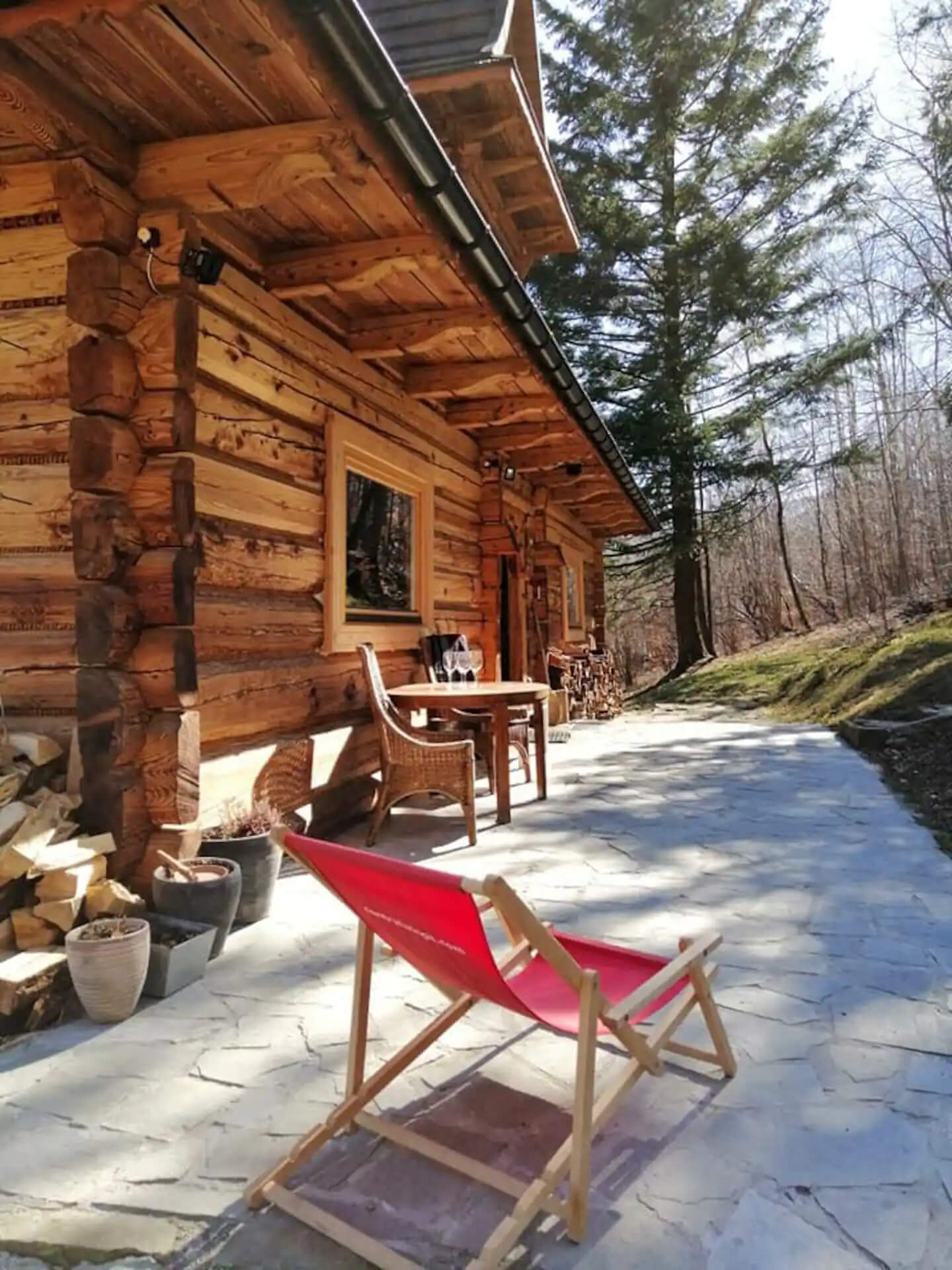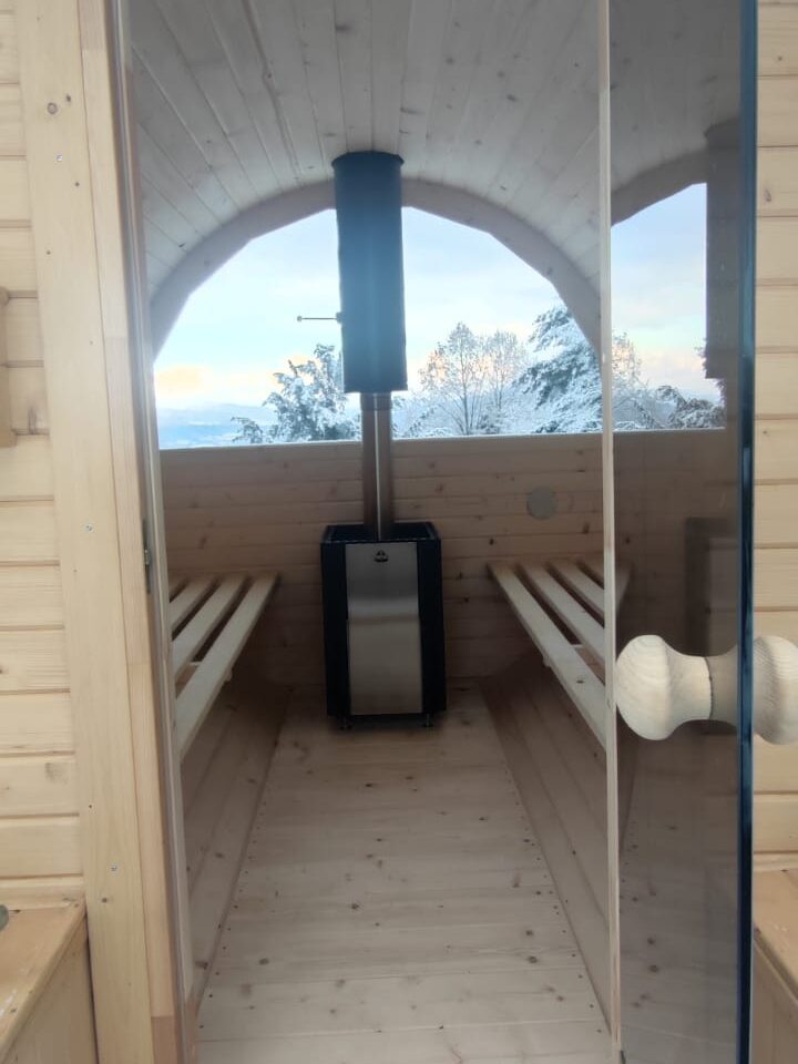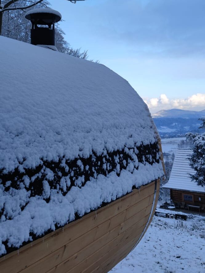 Powyżej domu w brzozowym lasku znajduje się 6\8 osobowa sauna opalana drewnem. Jest idealna w jesienno- zimowe dni zwłaszcza po całodziennych górskich trekkingach, biegach czy ćwiczeniach jogi.