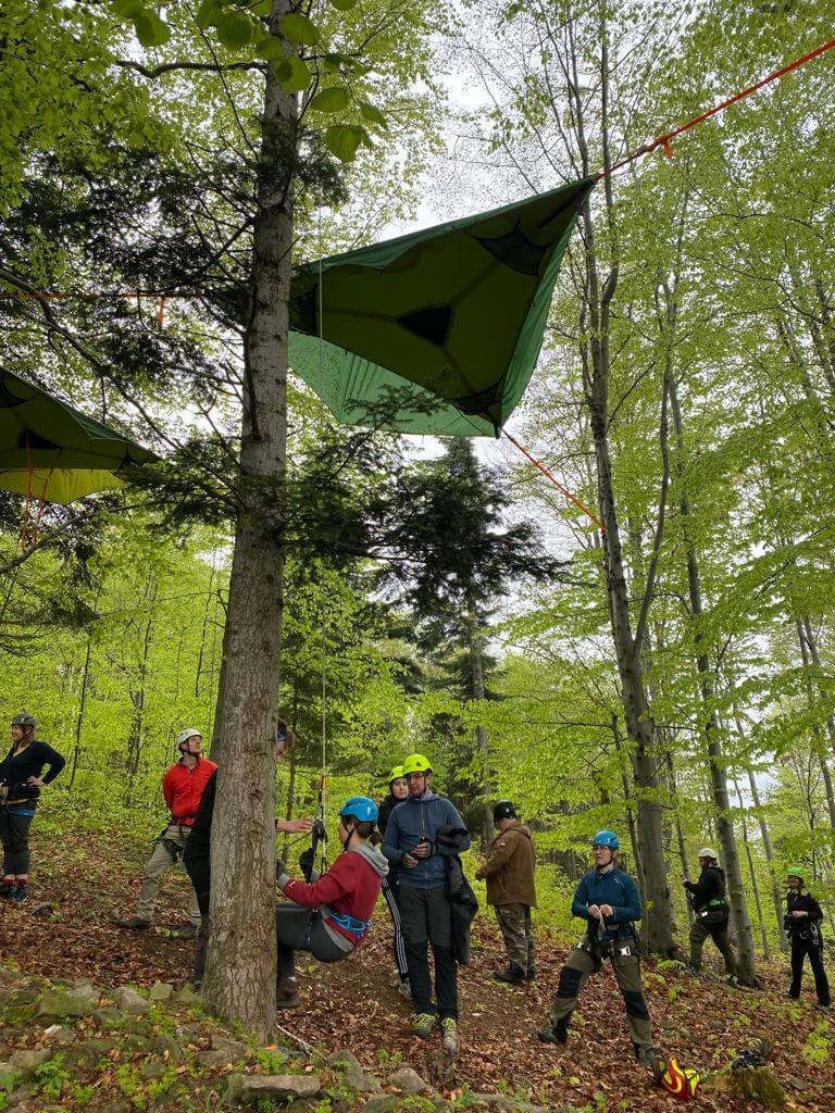 Nocowanie w namiocie, rozwieszonym w koronie drzewa zostanie w Twojej pamięci przez całe życie. Przekonasz się jakim niezwykłym doznaniem jest poranek spędzony kilkadziesiąt metrów nad ziemią w objęciach przyrody. Specjalne nadrzewne namioty mamy rozwieszone zarówno nisko nad ziemią tak aby mogły wchodzić do ich dzieci jak również wysoko w koronie drzew dla tych którzy oczekują nieco więcej adrenaliny. Wspinanie na drzewa jest ciekawą alternatywą do tradycyjnych eventów integracyjnych , wieczorów panieńskich, spotkań urodzinowych organizowanych dla dzieci.